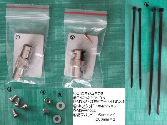 BNC中継コネクター、BNCコネクター(3D2V用)、M3ばね座付きナベ小ねじ4個