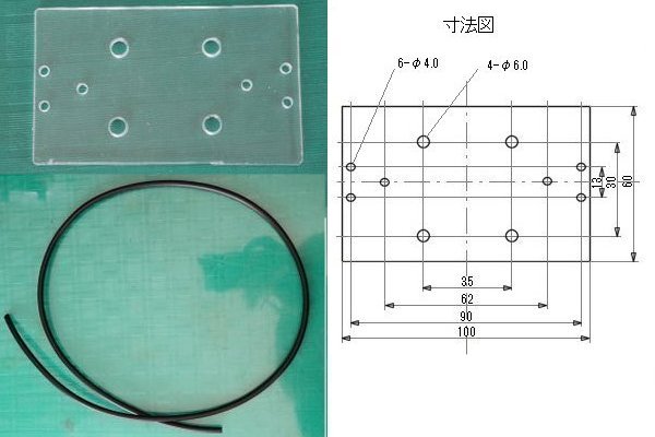 穴あけ済アクリル板(t=3mm)100mm×60mm、同軸ケーブル(3D2V)1m