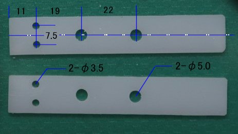 穴径はφ3o×2 φ4.5o×1(3mmのリベットを挿入する穴)