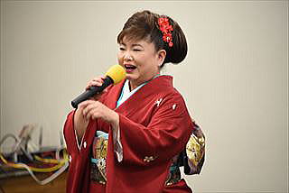 午後は1時から水田かおりさんのミニライブが行われ、水田さんのオリジナル曲や美空ひばりさんの曲を熱唱し最後に新曲の「女春秋夢しぐれ」を披露し終了しました。このカラオケの映像には高尾会長も登場しているそうです。