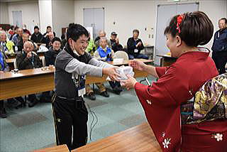 講演後はハンディトランシーバが当たるお楽しみ抽選会を行い参加者はコールサインを読み上げられるたびに一喜一憂していました。最後に飛び入りで水田かおりさんからCDとカップ麺のプレゼントがありじゃんけん大会で当選者を決定し大盛り上がりでした。