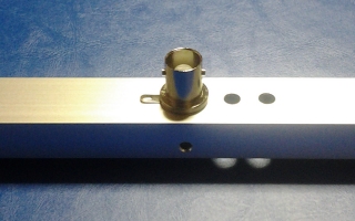 5.下の図の様に給電部のテフロン線を配線しBNCコネクターの芯線にはんだ付けをする。