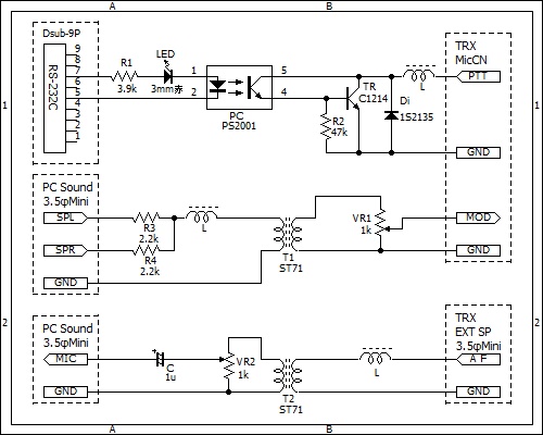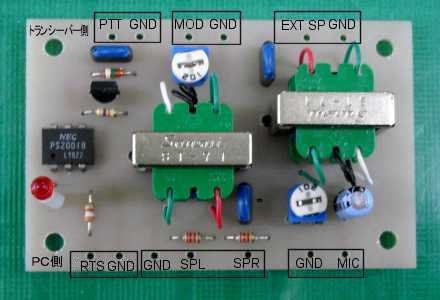 高周波の回り込みに配慮して、無線機とPCの間は直流的に絶縁する。