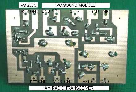 ケーブルは無線機側とパソコン側に分けてケースの引き出し穴を通してから基板にはんだ付けをおこなう。
