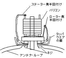 このアンテナを作る場合のコツは、メインループの大きさの決定(1/7λ〜1/3λ程度)大きな電流が流れるのでなるべく太くて導電性の良いもの、バリコンはできればバタフライバリコン・真空バリコンなどのように耐圧・電流許容値が大きく最小容量の小さなものがほしいところです。(バリコンによって、配線の場所が変ります)