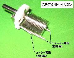 バリコンの端子は下の写真の様にステーター側のどちらか一方とローター側(バリコンによっては引き出し端子の位置が違うが、ローターの軸のバネと一体になっています。