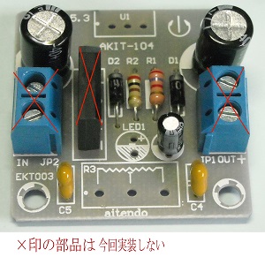 1.基板(アイテンドー AKIT−104)に部品の取付はんだ付けをします。
